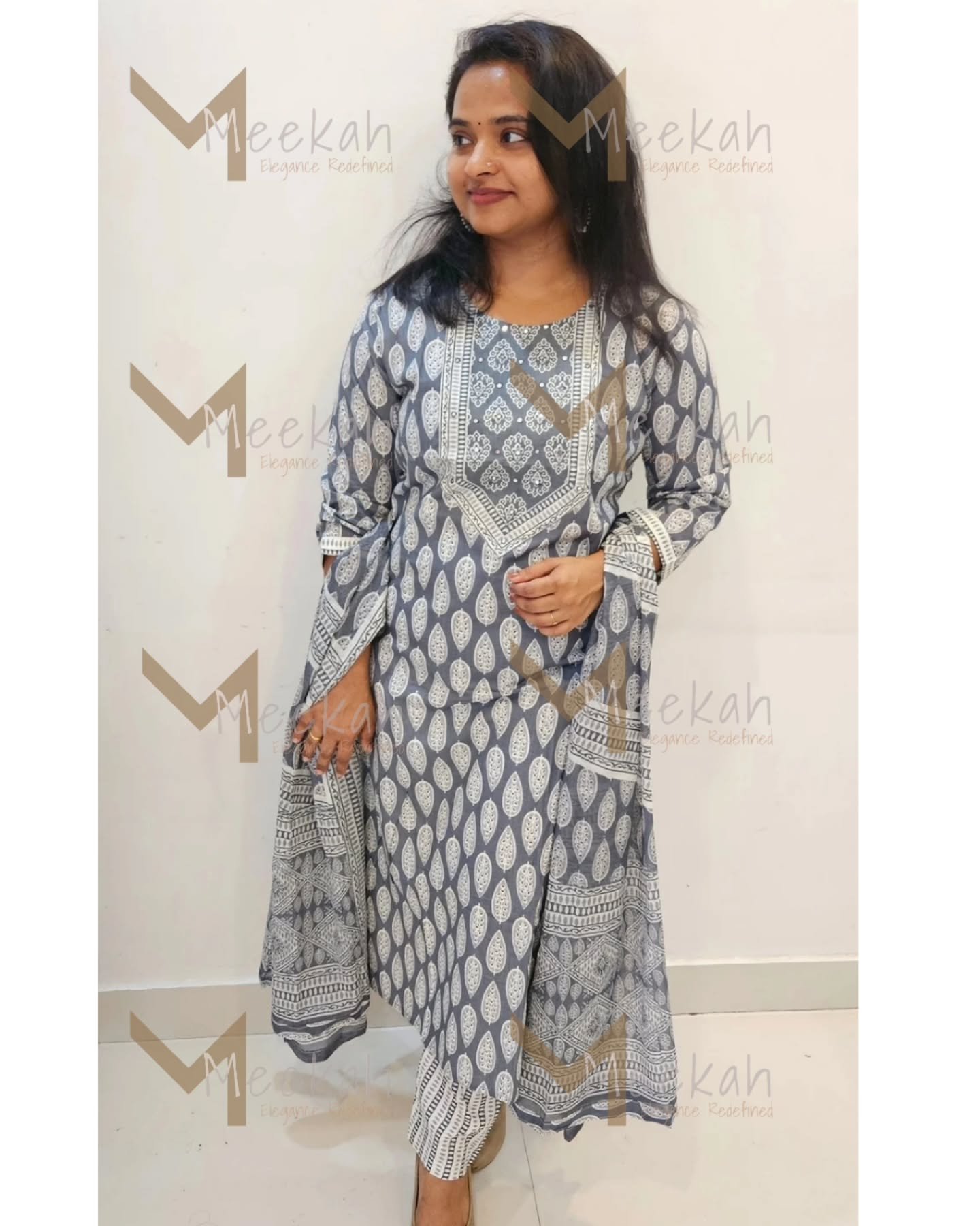 Details: – Beautifully crafted cotton kurti with spread mirror work on the yoke, adding a touch of elegance – Comfortable cotton pants to complete the look – Matching cotton dupatta